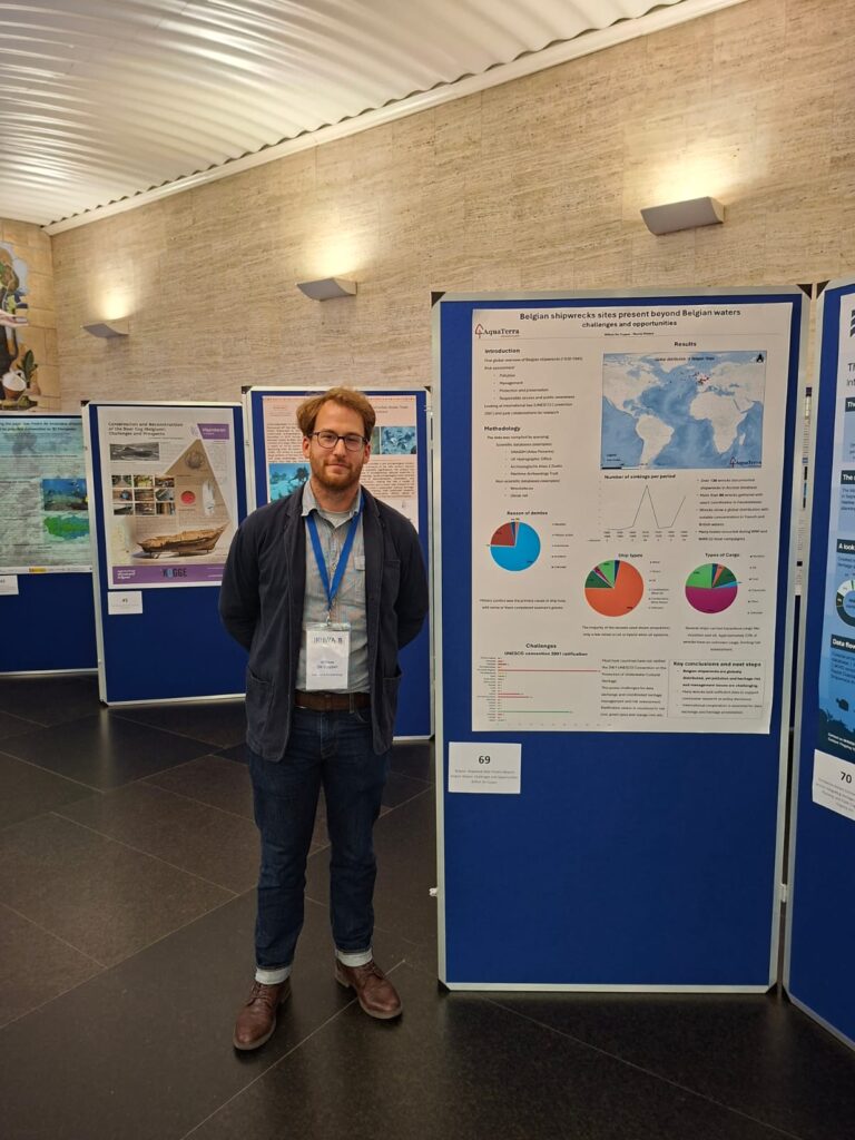 AquaTerra Archaeology is currently conducting research on Belgian shipwrecks in foreign waters. The preliminary findings were presented in the form of a scientific poster at IKUWA8 – the 8th International Congress of Underwater Archaeology, which took place in Ostend, Belgium, from 13 to 17 October 2025.